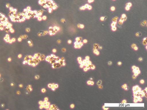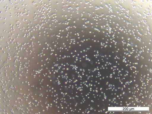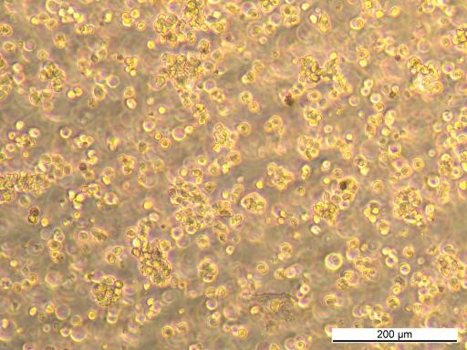 Cells also grow well in Ultra Low Attachment plastic ware (ULA flasks). Here cells can grow in single suspension and as small cell aggregates.